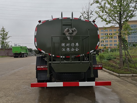 采用東風(fēng)EQ2180GD5DJ型越野汽車底盤,東風(fēng)一排半寬體駕駛室,4×4驅(qū)動(dòng),康明斯ISB190 50國(guó)五發(fā)動(dòng)機(jī),六檔變速箱,東風(fēng)商用車橋,前驅(qū)動(dòng)橋3.8噸,后橋10噸,10.00R20輪胎,軸距4500mm,電動(dòng)玻璃,方向助力,斷氣剎,ABS。罐體采用優(yōu)質(zhì)碳鋼QB235板材,板材厚度4mm,罐體容積11.1立方,變速箱安裝取力器,大功率水泵可泵進(jìn)泵出,后置工作平臺(tái)帶水炮射程25米,消防栓接口左右各一個(gè),選裝駕駛室頂部安裝長(zhǎng)條警燈帶喊話器,全車顏色軍綠,兩側(cè)噴涂白色森林消防字樣。