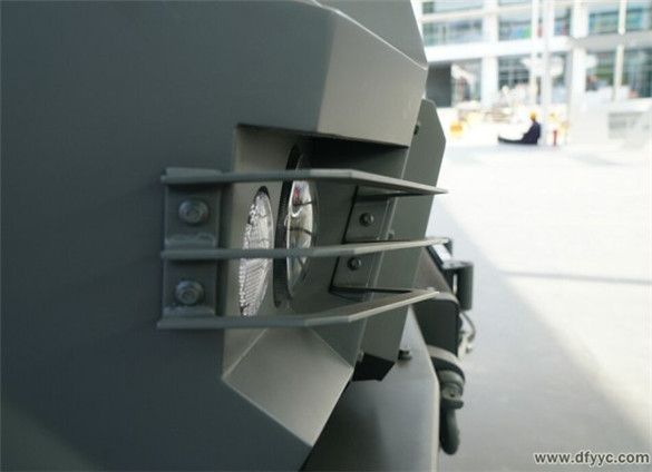 東風(fēng)四驅(qū)防雷反恐戰(zhàn)車的前組合燈分為帶透鏡的近光燈、雙角度照射遠(yuǎn)光燈,轉(zhuǎn)向燈位于翼子板兩側(cè)。近光燈與遠(yuǎn)光燈被3幅面橫置格柵保護。