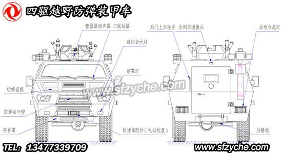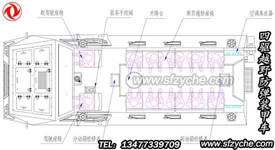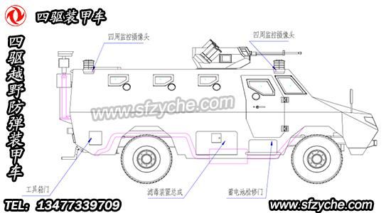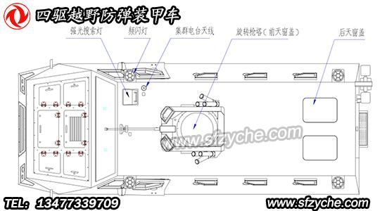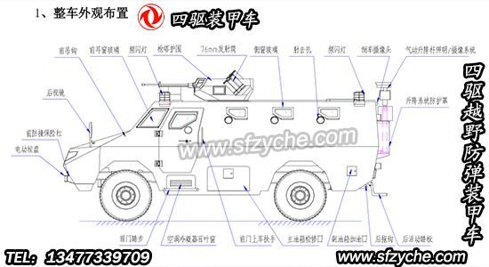四驅(qū)防爆裝甲車詳細(xì)布置圖如下: