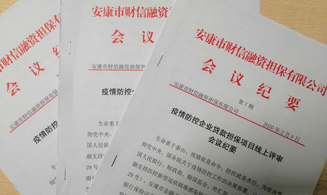 連日來,公司漢濱、紫陽等分公司主動作為,聯(lián)合合作銀行共赴企業(yè)盡調,開通綠色審批通道,壓縮審批時間,開展項目線上評審,以最短時間受理、完成擔保融資審批。一線員工線上服務、上門服務,全力為一線防疫企業(yè)、在保企業(yè)保駕護航。