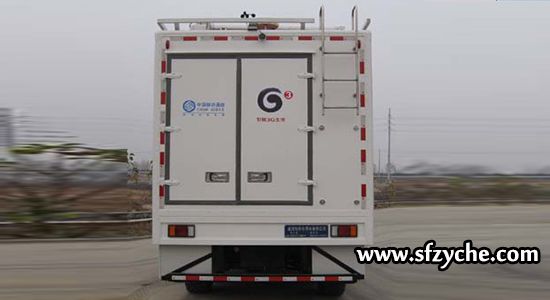1.隨底盤選裝駕駛室頂部空調(diào);2.車后部加裝后梯,后梯的下半部分可拆卸,車輛行駛時(shí)可放置廂內(nèi); 3.主要專用裝置:移動(dòng)通信基站天線、升降塔;4.專用功能:確保在熱點(diǎn)區(qū)域臨時(shí)增加同時(shí)提供數(shù)個(gè)基站的話務(wù)量支持;5.側(cè)面防護(hù)裝置的材質(zhì)為鋁合金,連接方式為螺栓連接;后下部防護(hù)裝置的材質(zhì)為Q235,連接方式為螺栓連接,斷面尺寸為100mm×50mm,離地高度為530mm