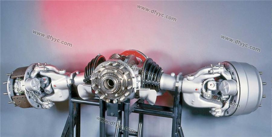 斷開式車橋是太脫拉另一與眾不同之處,這幫助太脫拉這樣的重型卡車實(shí)現(xiàn)了全輪獨(dú)立懸架,允許車輪有較大的跳動(dòng)空間,大大提高了整車在極端路況下的通過能力,尤其是通過臺(tái)階、壕溝、扭曲路的能力。太脫拉在空載的時(shí)候車輪是呈內(nèi)八字的大外傾角姿態(tài),行駛的時(shí)候只有輪胎的外側(cè)胎肩接觸地面,而滿載的時(shí)候卻是呈負(fù)外傾的姿態(tài),這因?yàn)槠鋽嚅_式車橋?qū)嶋H上是單橫擺臂的結(jié)構(gòu)所造成的,只要使用特制的輪胎,其輪胎磨損情況可以有效的改善。