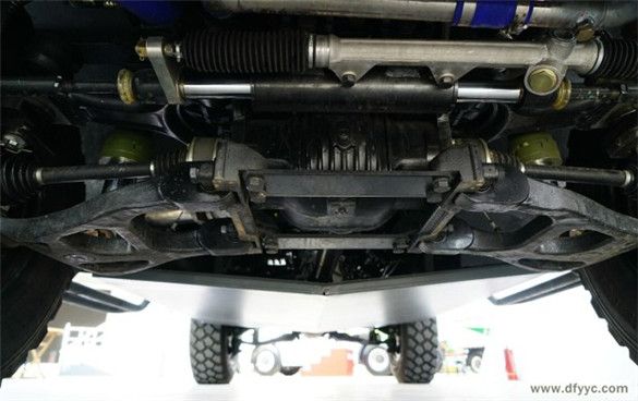東風(fēng)四驅(qū)裝甲防雷反恐戰(zhàn)車的四驅(qū)系統(tǒng)全部國(guó)產(chǎn)化并非一步到位,經(jīng)過1代猛士基型車、標(biāo)準(zhǔn)2代猛士裝甲車、長(zhǎng)軸距2代猛士裝甲車近10年的發(fā)展積累而來。而這種通過引進(jìn)技術(shù)、分布國(guó)產(chǎn)、吸收改進(jìn),到全部國(guó)產(chǎn)化并掌握知識(shí)產(chǎn)權(quán)的發(fā)展模式,已經(jīng)成為包括東風(fēng)特種汽車在內(nèi)多家軍裝企業(yè)的生產(chǎn)模式。在一個(gè)較高的起點(diǎn)上,用更短時(shí)間研發(fā)全新裝備,已經(jīng)脫離單純的購(gòu)買、組裝的非可持續(xù)發(fā)展模式。 上圖是東風(fēng)四驅(qū)裝甲防雷反恐戰(zhàn)車底盤特寫。 東風(fēng)四驅(qū)裝甲防雷反恐戰(zhàn)車采用實(shí)時(shí)四驅(qū)系統(tǒng),包括前后差速器以及分動(dòng)器和控制系統(tǒng)全部國(guó)產(chǎn)化。帶有自動(dòng)調(diào)節(jié)輪胎壓力的系統(tǒng),具備5萬公里行駛無故障能力。為了提升東風(fēng)四驅(qū)裝甲防雷反恐戰(zhàn)車通過性,加裝了中央差速鎖。