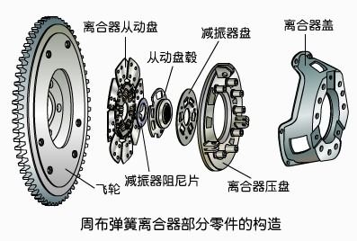 周布彈簧離合器的構(gòu)造特點是螺旋彈簧沿圓周均勻分布。周布彈簧式離合器的主、從動部分、壓緊部分均安裝在離合器殼內(nèi)、外及駕駛室中。