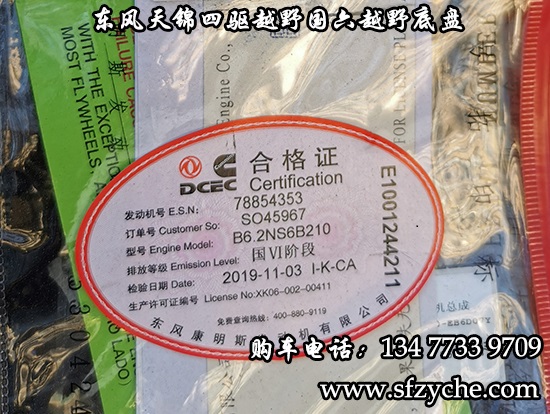 國六排放東風(fēng)天錦四驅(qū)越野底盤正式下線了,東風(fēng)天錦4*4驅(qū)動(dòng)國六越野卡車底盤采用:東風(fēng)天錦D530一排半駕駛室,4×4驅(qū)動(dòng),康明斯B6.2NS6B210國六發(fā)動(dòng)機(jī)210馬力,韶齒六檔變速箱,東風(fēng)商用車橋,前驅(qū)動(dòng)橋3.8噸,后橋10噸,10.00R20輪胎,軸距4500mm/4700mm,電動(dòng)玻璃,方向助力,斷氣剎,ABS,大燈自動(dòng)調(diào)節(jié),自動(dòng)調(diào)整臂,選裝原廠空調(diào)。